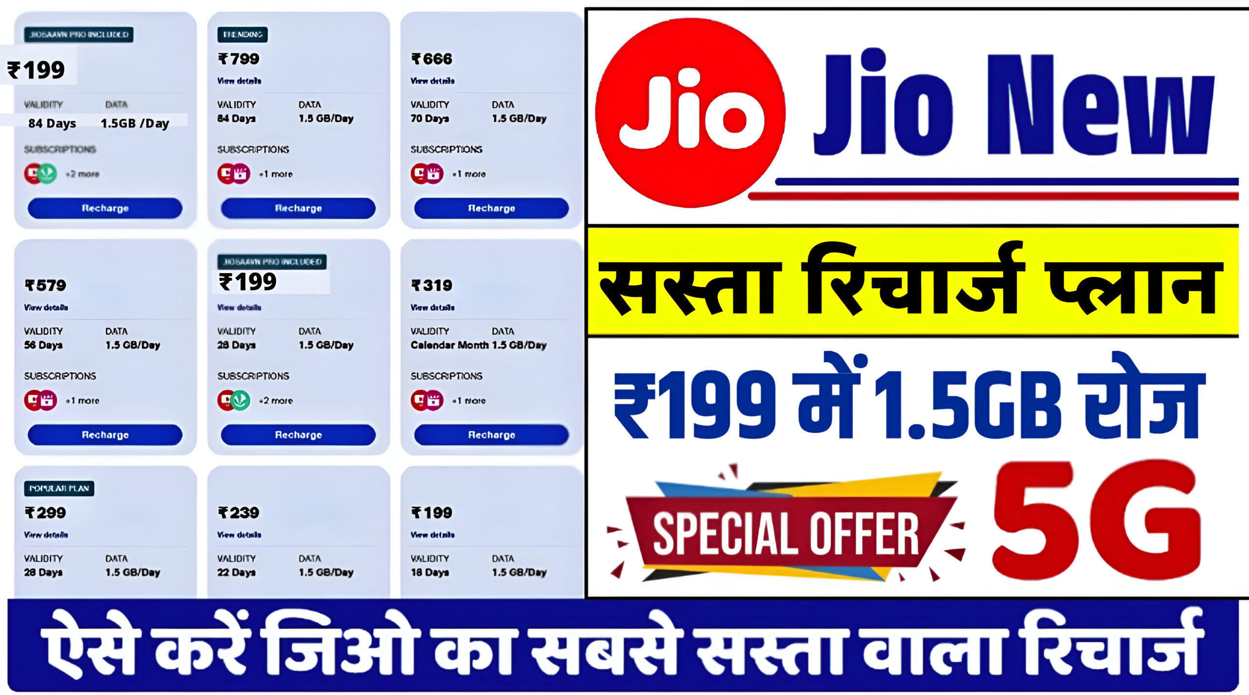 Jio 84 Days Recharge Plan: जिओ ने लॉन्च किया ₹199 में 1.5GB रोज 84 दिनों तक अनलिमिटेड कॉलिंग सुविधा